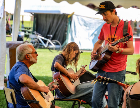 There is a slo-pitch jam each day for those just starting on their instruments. Michael Taylor has led it the last few years and he is fun and very encouraging to the players. It's amazing to watch the growth in the attendees comfort and skill on their instrument between the very first jam and the last one. Another notable change this year was there was an increase in facilitated late-night jam opportunities including old-time fiddle focused jams, a singing jam, intermediate jams led by Golden Shoals and Seth Mulder and Midnight Run, and an intermediate-advanced jam. This provided opportunities to camp goers who maybe didn't know people to jam with or don't feel comfortable leading a song.